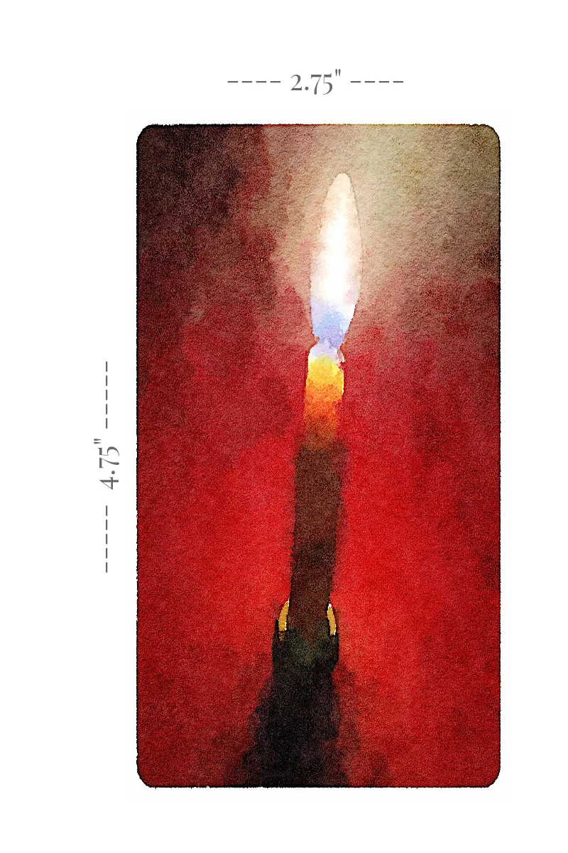 The cards are tarot-sized..so big enough for even little hands to hold, but not too big. I had them made with a water resistant coating (because, well...children). And they come tucked safely inside a small muslin sack that you can easily toss into your bag when your family is on the go.